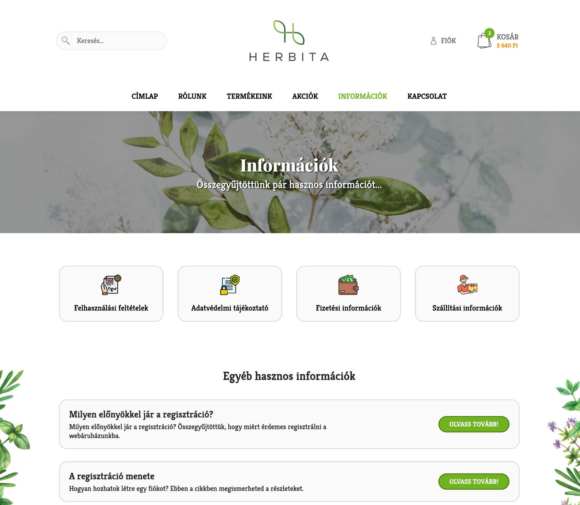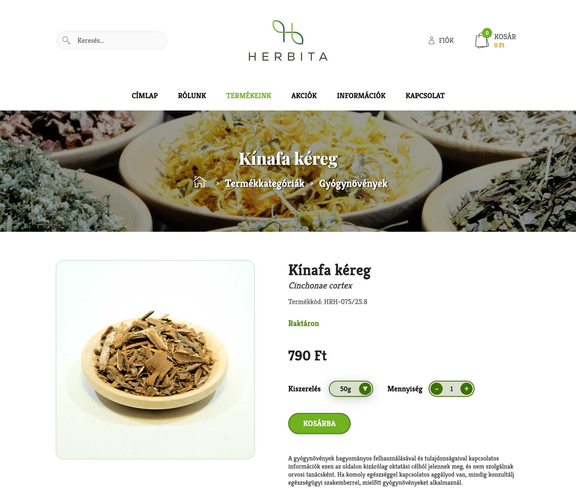 A Herbita.hu gyógynövényeket, illóolajokat, magvakat, fűszereket és természetes étrend-kiegészítőket kínáló webáruház.. A cél egy modern, felhasználóbarát és gyors online értékesítési platform létrehozása volt, amely hosszú távon is rugalmasan fejleszthető és képes kiszolgálni a vásárlók igényeit.