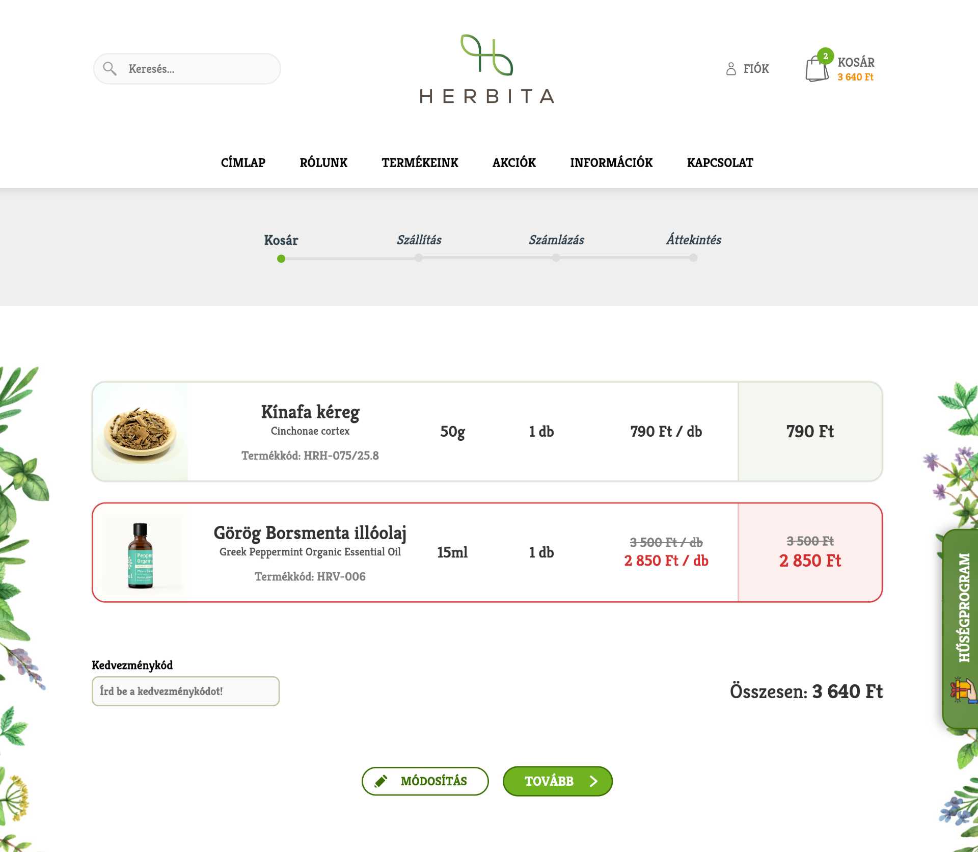 A Herbita.hu működését és fejlesztését az indulás óta folyamatosan támogatjuk, biztosítva, hogy a webáruház mindig naprakész, megbízható és ügyfélbarát maradjon.
